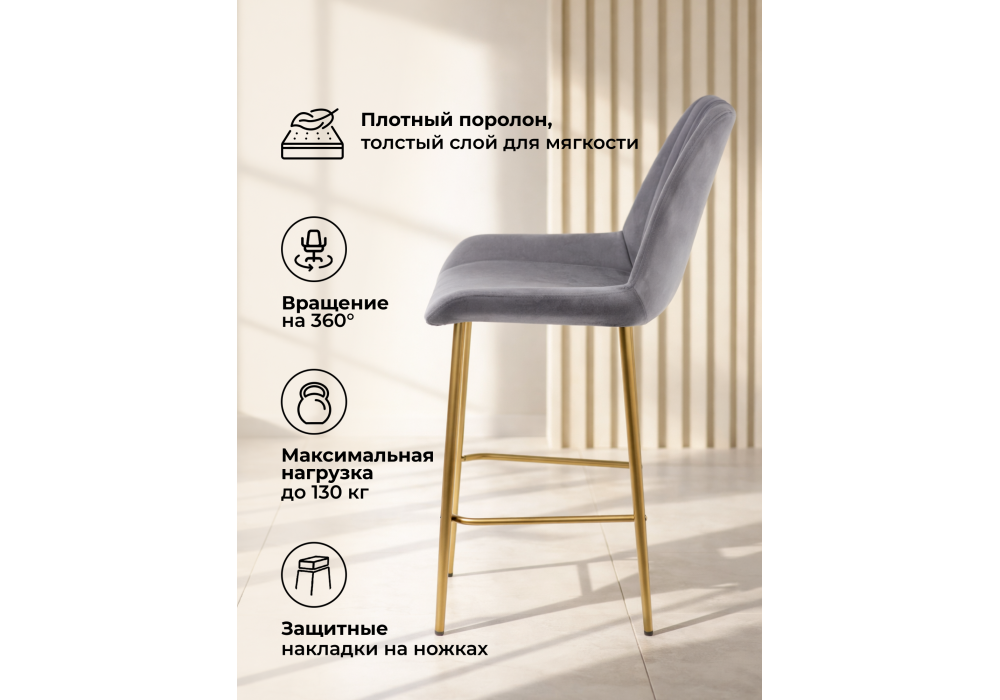 Барный стул поворотный Woodville Седа 360 темно-серый (zd 995) / золотой np 632595 в Калуге