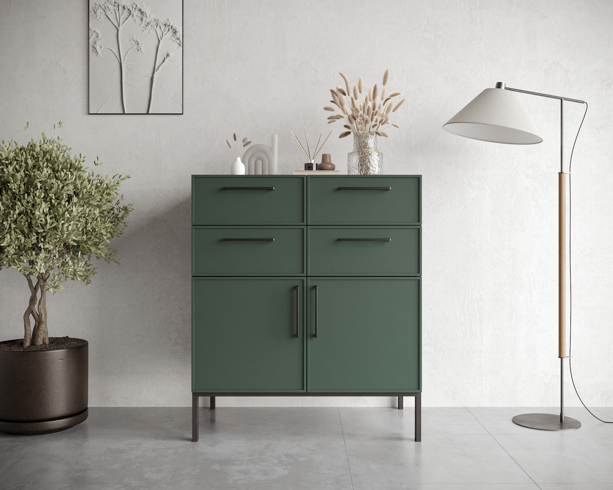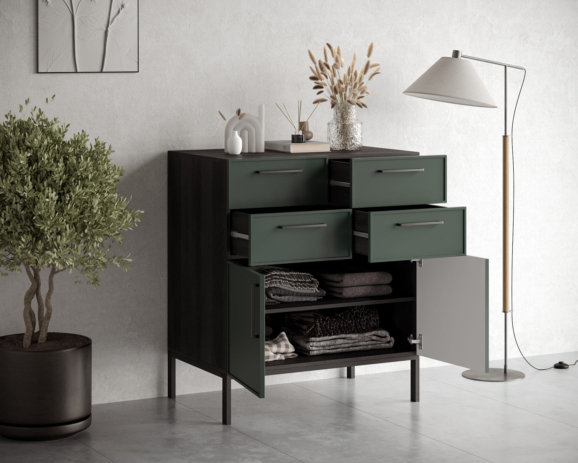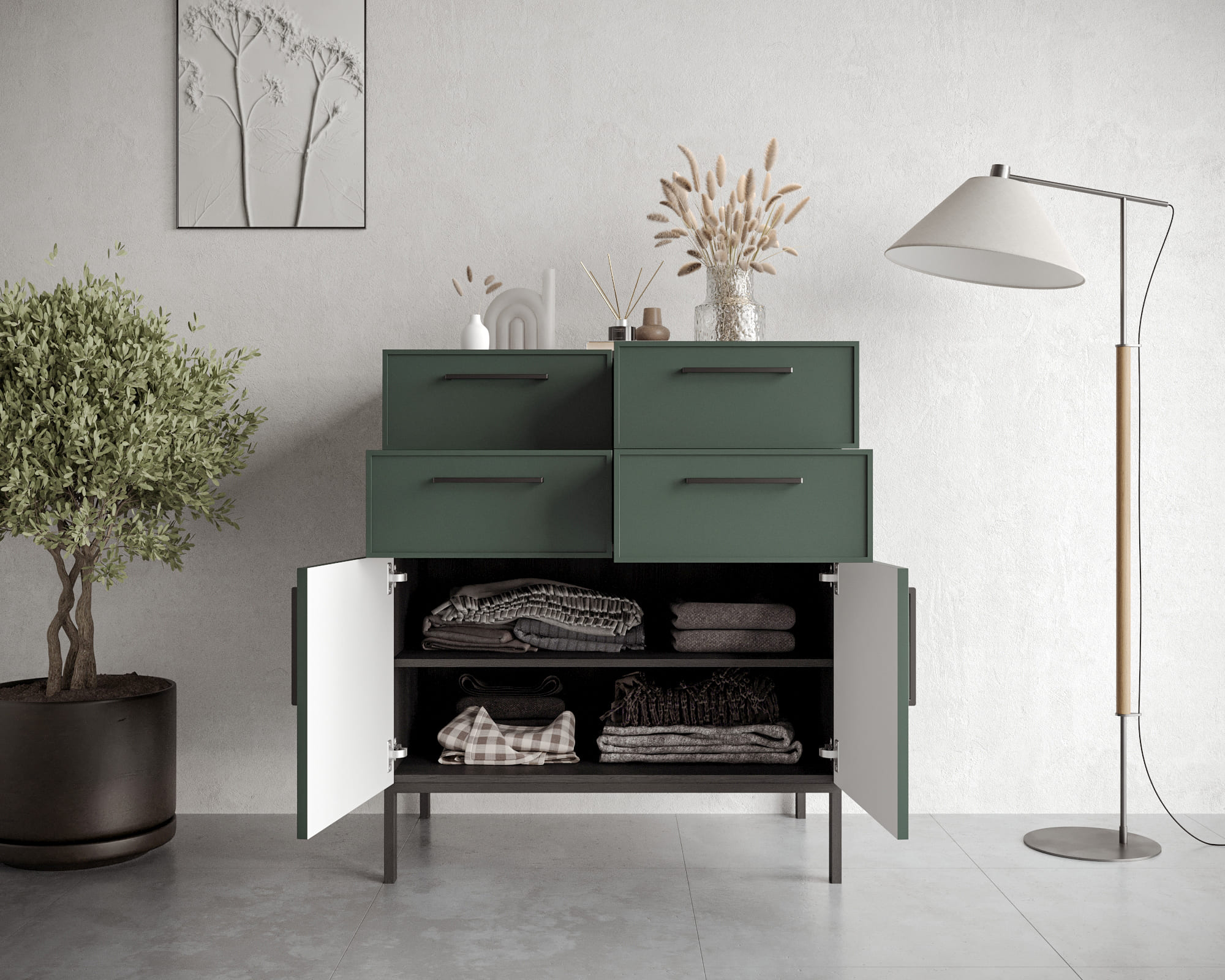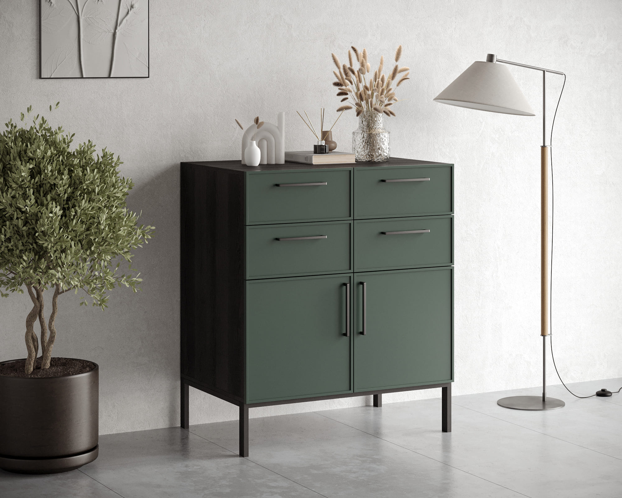 Купить "Большой комод с четырьмя ящиками и дверками Николь NLN17G"