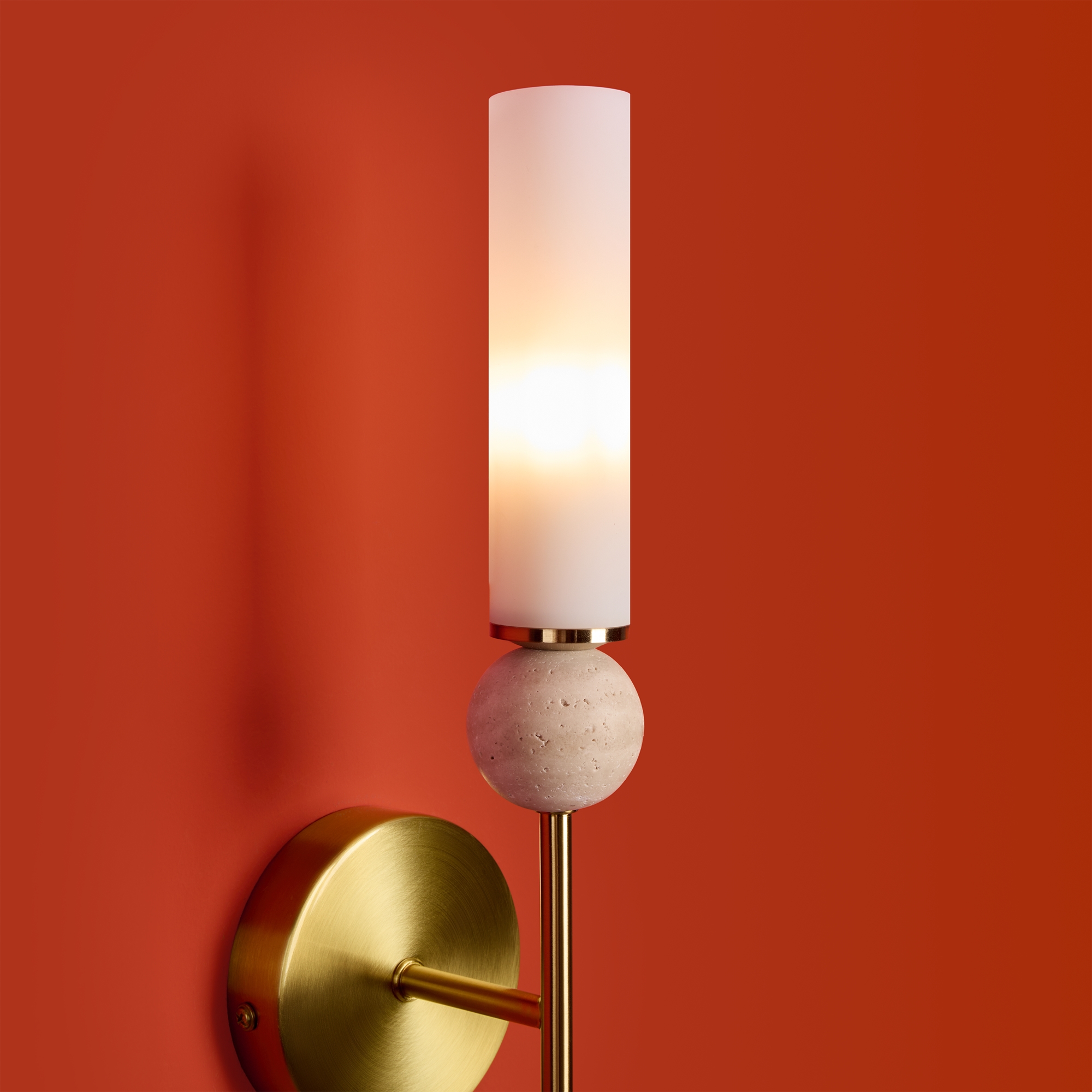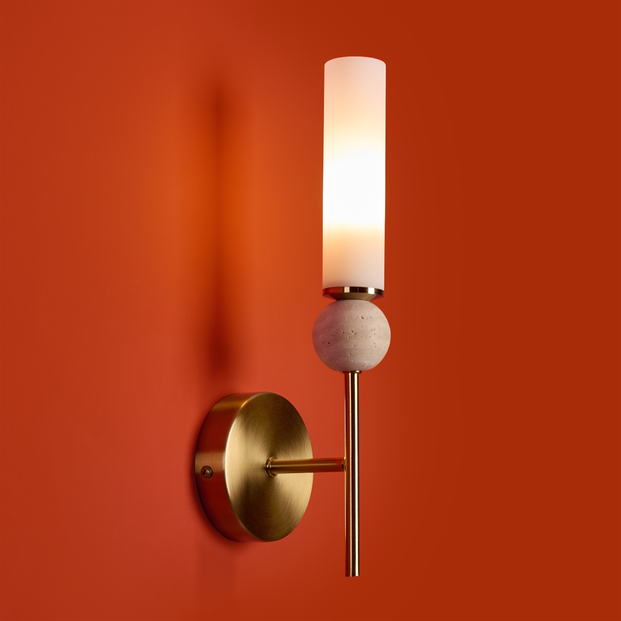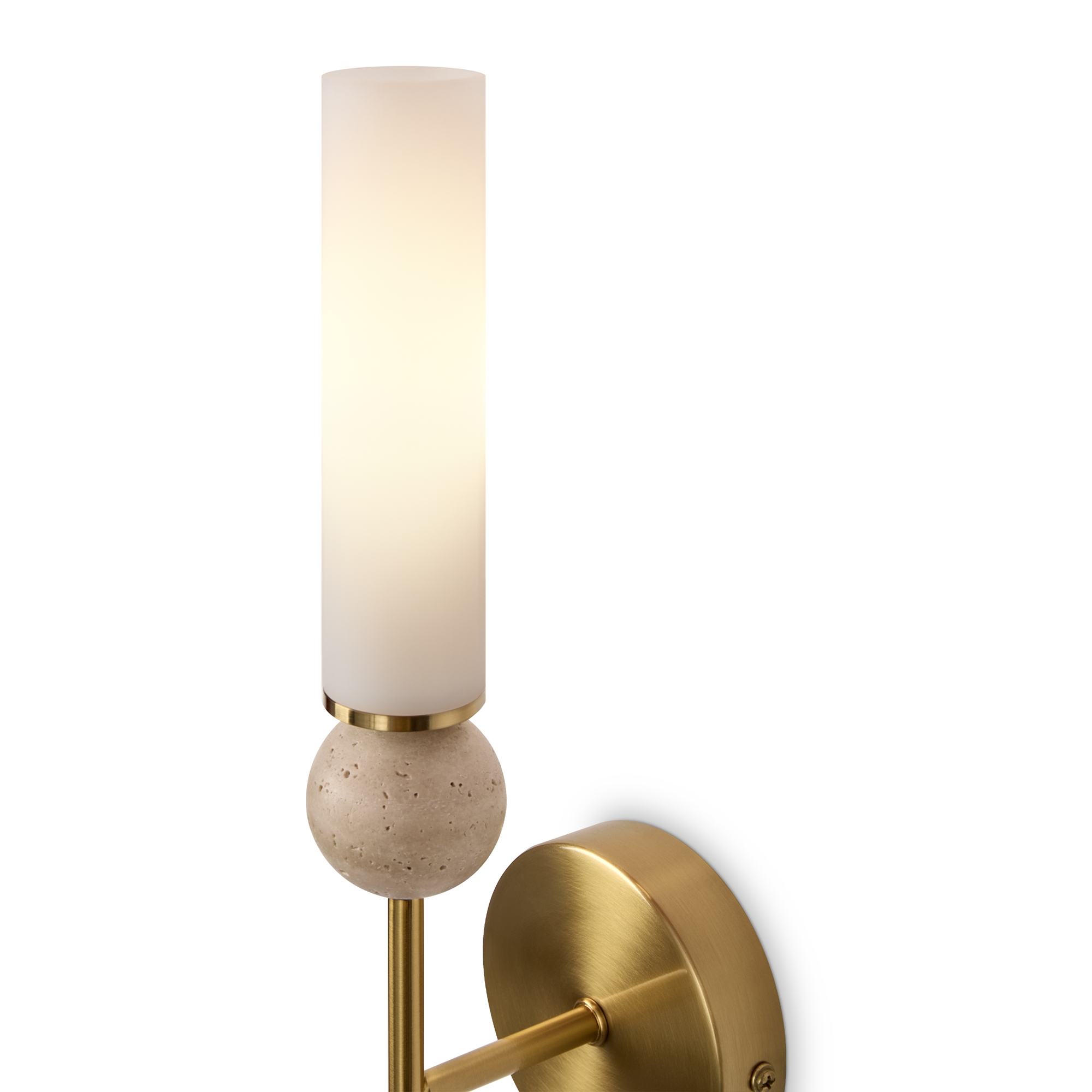 Серия Sunspot использует камень травертин как основной декоративный элемент. Настенные бра в двух вариантах: с матовым белым стеклянным плафоном и со «скользящим» теплым светом. Отличительная черта бра: увеличенный размер плафона и сенсорное включение/выключение без диммирования. Подвесные светильники имеют прозрачные стеклянные плафоны с декоративными шариками из камня травертин. Sunspot включают три модели подвесов разных размеров и форм стеклянной окантовки на плафон. Арматура — металл латунного и черного цвета Источники света LED 3000K и цоколь G9. Настольная лампа с touch переключателем . Серия создает комплексное зональное и акцентное освещение, подходящее для создания уютной атмосферы.