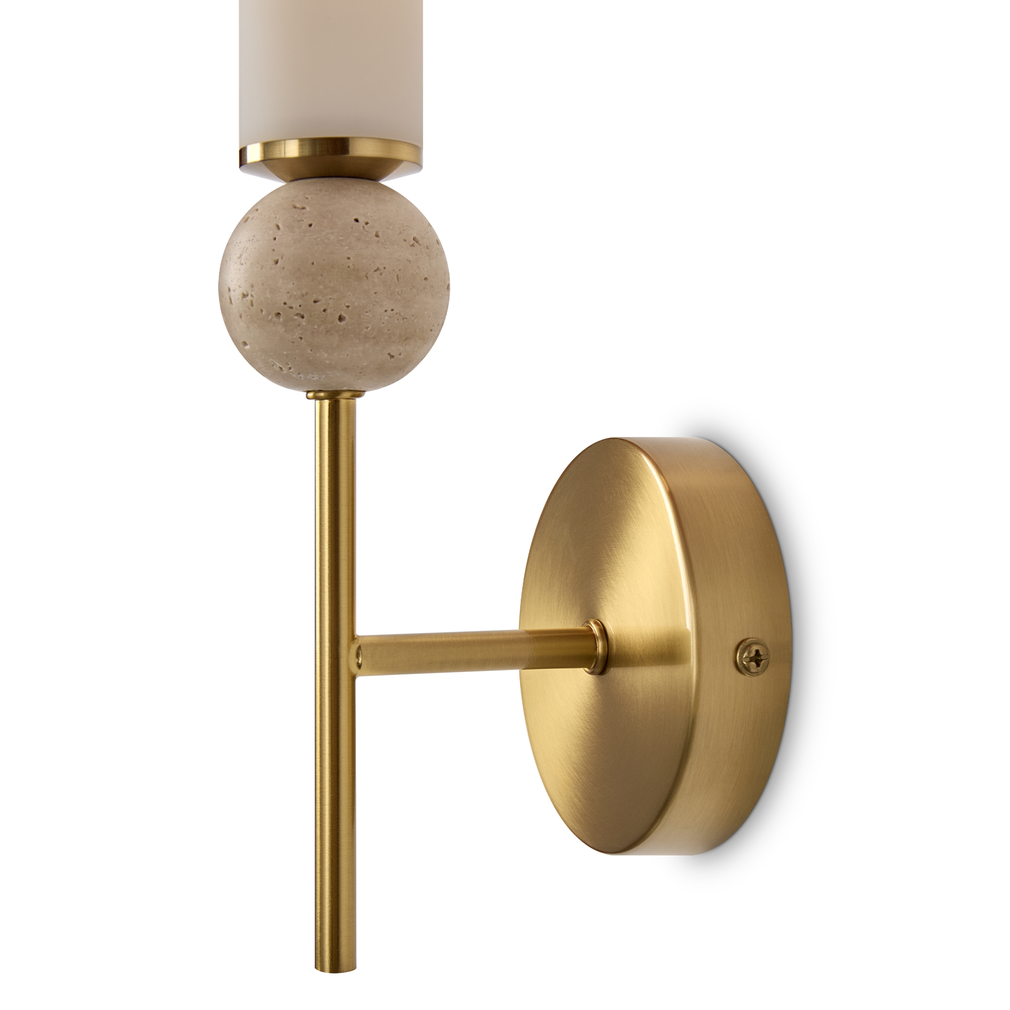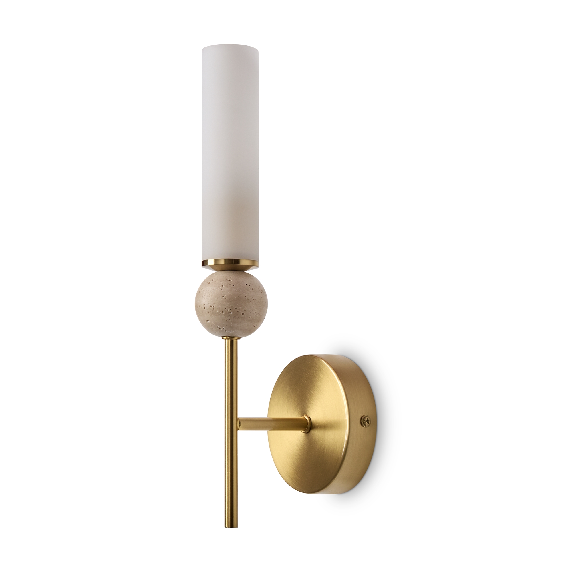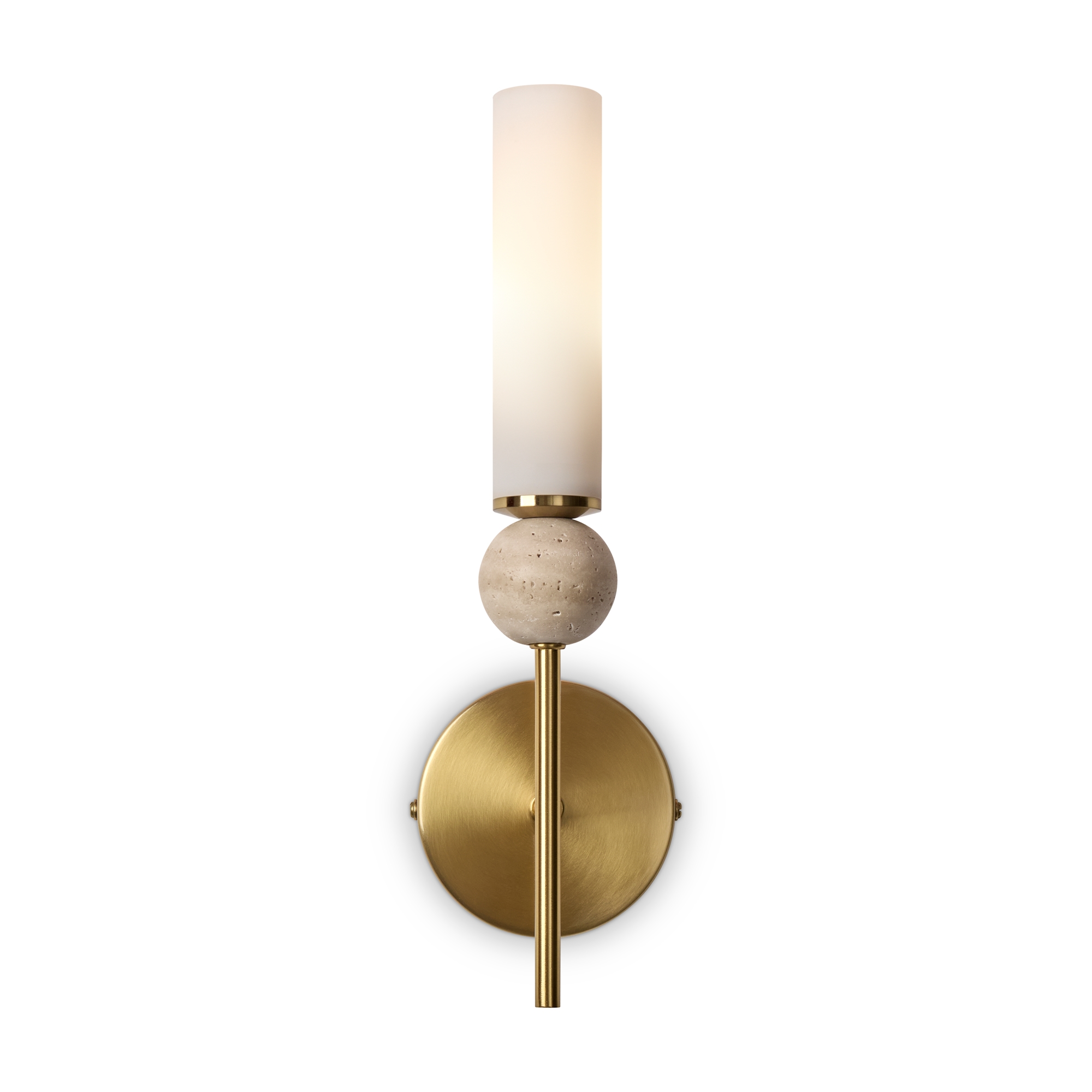 Серия Sunspot использует камень травертин как основной декоративный элемент. Настенные бра в двух вариантах: с матовым белым стеклянным плафоном и со «скользящим» теплым светом. Отличительная черта бра: увеличенный размер плафона и сенсорное включение/выключение без диммирования. Подвесные светильники имеют прозрачные стеклянные плафоны с декоративными шариками из камня травертин. Sunspot включают три модели подвесов разных размеров и форм стеклянной окантовки на плафон. Арматура — металл латунного и черного цвета Источники света LED 3000K и цоколь G9. Настольная лампа с touch переключателем . Серия создает комплексное зональное и акцентное освещение, подходящее для создания уютной атмосферы.