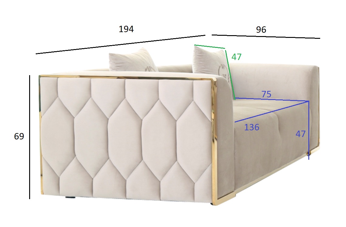 Стильный двухместный диван BERN – роскошная мягкая мебель с элегантным дизайном и декоративными подушками. Особенного очарования и эксклюзивности модели придает каркас из металла с дорогим золотым блеском. Мягкая спинка и широкие подлокотники гарантируют максимальный комфорт, а нежная велюровая ткань в качестве обивки отвечает за люксовую эстетику. В качестве материала каркаса выбрано натуральное дерево. Бежевый диван в интерьере гостиной выглядит всегда уместно и гармонично сочетается с другой мебелью. Он подойдет как для жилого, так и для бизнес-интерьера. В каталоге также представлены трехместный диван из этой же серии и кресло LOCARNO, которые составят стильный мягкий комплект мебели.