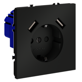 Розетка встраиваемая с заземлением и защитными шторками, 16А Voltum S70 VLS040208 (черный матовый)