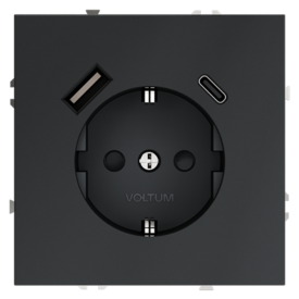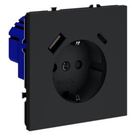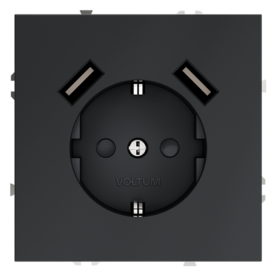 Накладка для розетки с заземлением и защитными шторками, с USB A+A Voltum S70 VLS000907 (графит)