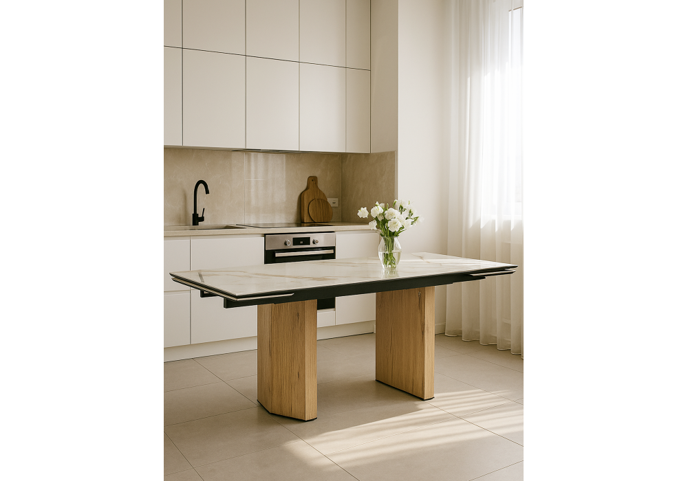 Керамический стол раздвижной Woodville Монерон 180(240)x90 calacatta gold / дуб монтана 621194 в Калуге