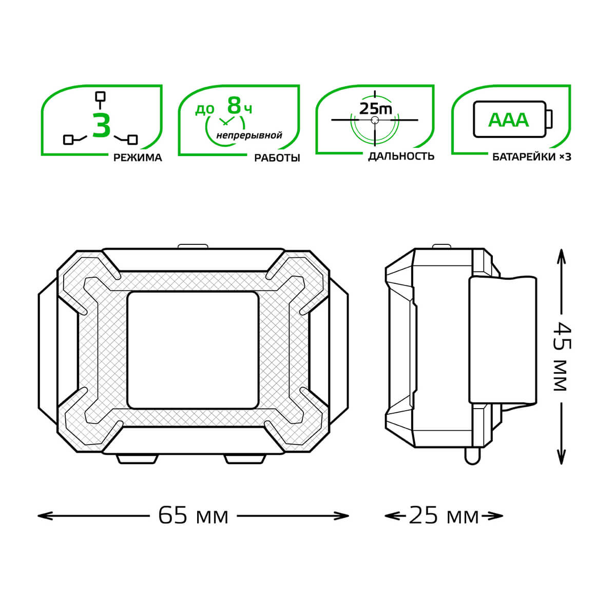 - Высота: 25 мм (2.5 см)
