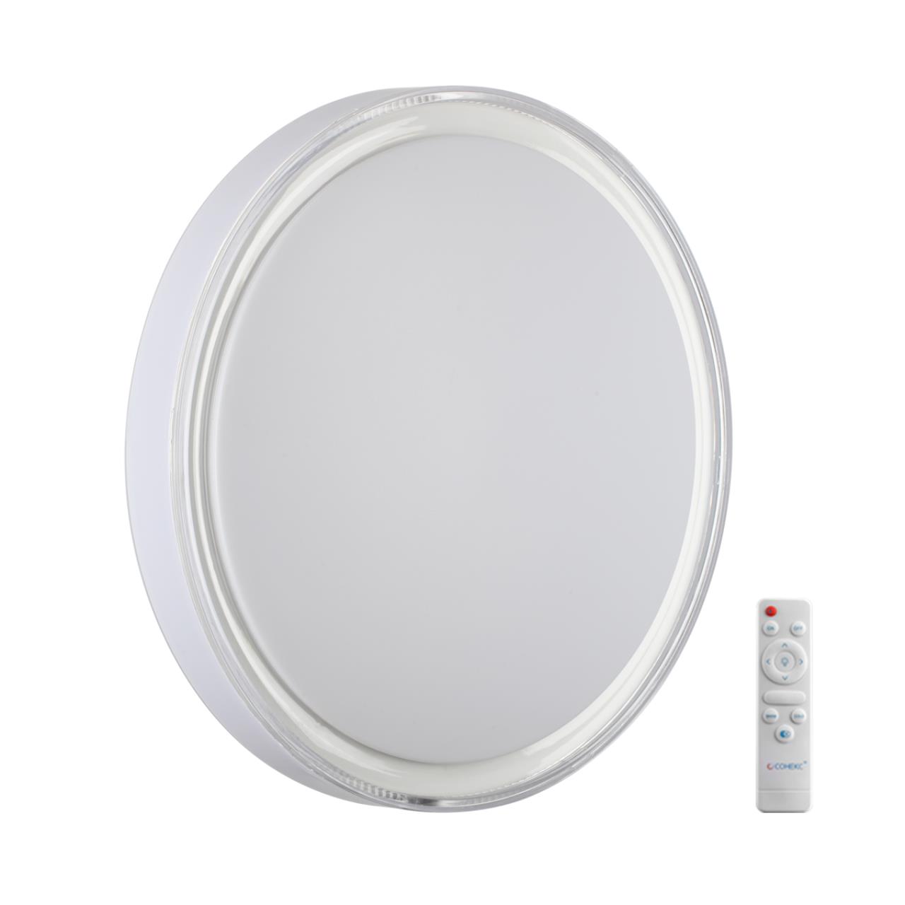 Светильник 7699/EL линии LAVEN состоит из металлического основания (базы) и пластикового рассеивателя. Материал рассеивателя — высококачественный пластик марки PMMA 2.0 белого цвета с матовой поверхностью без текстуры. Пластик обеспечивает светильнику равномерное рассеивание и хорошее светопропускание. Форма плафона: круглая, декорирована светопропускающим ободом из гладкого пластика белого цвета. Степень защиты IP43 позволяет использовать светильник в определенных зонах влажных помещений. В комплект входит заменяемый LED-модуль с линзами мощностью 70 Вт, соответствующей лампе накаливания 610 Вт, а также пульт ДУ (с креплением на стену), с помощью которого осуществляется плавное изменение цветовой температуры в диапазоне 3000—6000 К, изменение яркости, переход в режим переключения теплого/белого/холодного/ночного света. Светильник имеет функцию памяти.