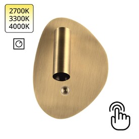 Roy — стильный светильник в цвете брашированной бронзы с сенсорным управлением, объединяющий точечный спот и мягкую заднюю подсветку. Оригинальная ассиметричная форма вдохновлена природой, технология touch switch позволяет включать светильник, раздельно включать зоны света и переключать цветовую температуру — от тёплого до нейтрального (2700K/3300K/4000K), а также диммировать свет долгим нажатием.