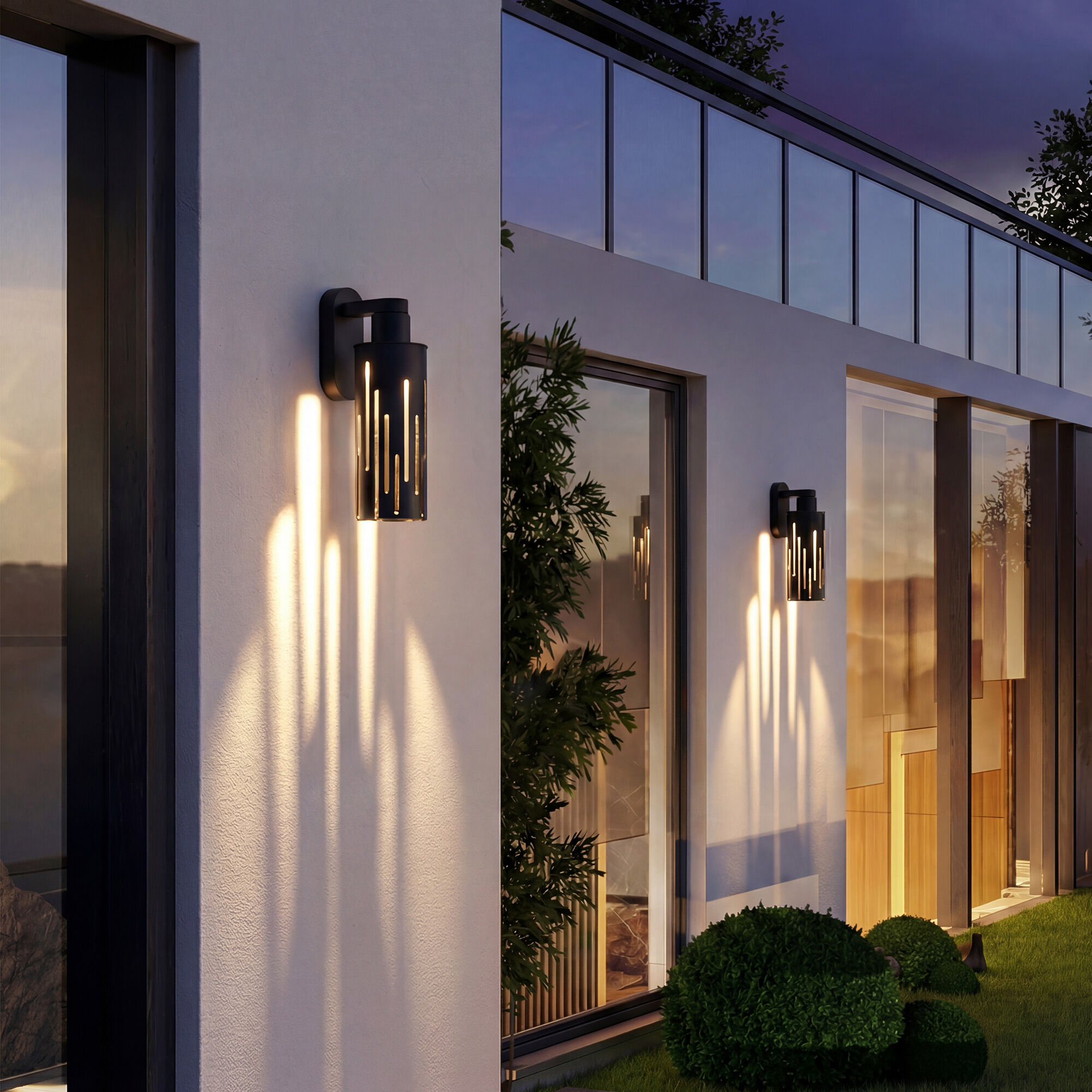 Уличный настенный светильник Streak станет настоящим украшением фасада здания. Металлический плафон выполнен в строгом и современном дизайне, декорирован вертикальными прорезями, сквозь которые проходит мягкий и рассеянный свет. Благодаря оригинальной конструкции, модель создает на стене световые узоры для уютной атмосферы и эстетичной привлекательности пространства.