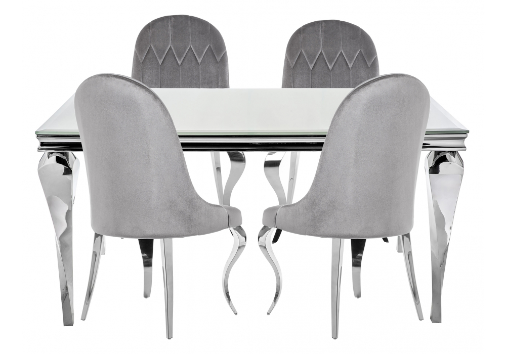 Изумительная модель 599472 от Российского производителя Woodville относится к коллекции Арлетта . Материал каркаса - Металл; Материал сиденья - Велюр; Материал ножек - Металл; Материал столешницы - Стекло; Материал обивки - Велюр; Цвет каркаса - Хромированный металл; Цвет сиденья - Серый; Цвет ножек - Хромированный металл; Цвет столешницы - Белый; Цвет обивки - Серый; Длина стола - 150; Ширина стола - 90; Высота стола - 76; Ширина стула - 53; Глубина стула - 58; Высота стула - 95 . Данную модель 599472 с быстрой доставкой спешите купить в магазине 220svet.ru