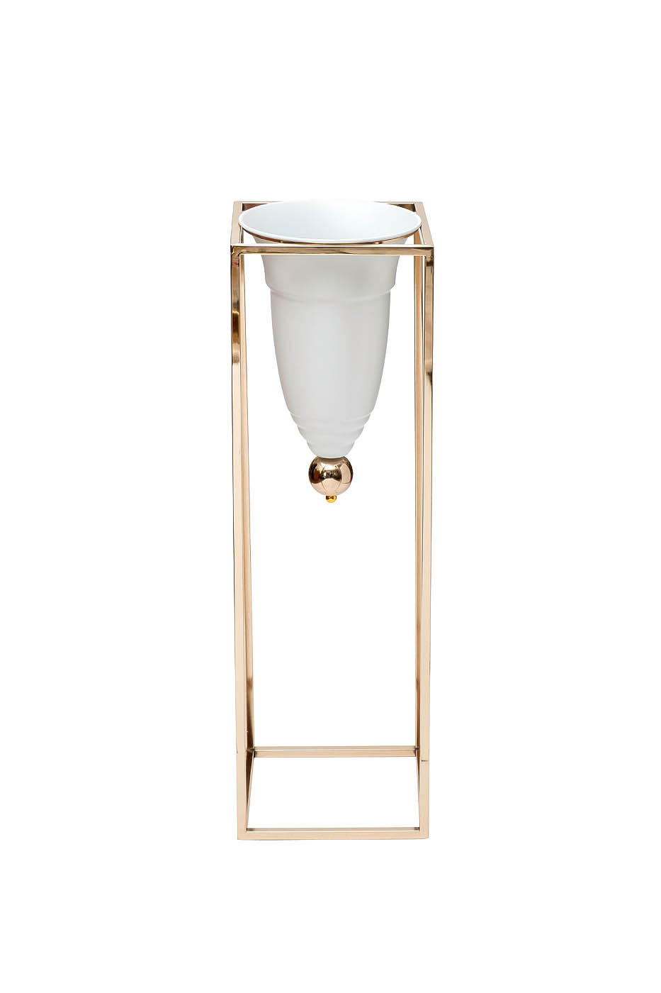 Изящное кашпо для цветов на подставке легко и непринужденно вписывается в интерьер арт-деко, уместно смотрится в сочетании с другим позолоченным декором. Оно добавляет обстановке свежести, вносит в атмосферу нотку благородного аристократизма. Прекрасно сочетается с мебелью, текстилем и декоративными элементами в гостиной, спальне, столовой, эффектно смотрится на светлом или темном фоне. Стильное кашпо белого цвета – идеальное решение для современных изысканных интерьеров. Оно добавляет блеска и шика окружающему пространству. Это будет оригинальный подарок для любого ценителя эксклюзивных аксессуаров.