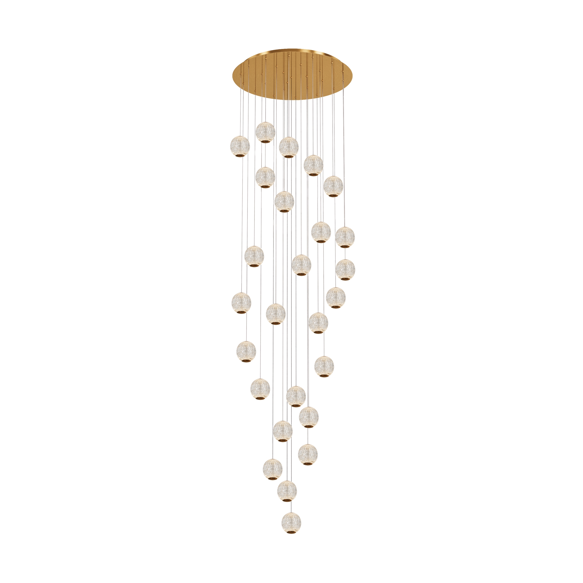 Цвет арматуры — латунь, плафоны из прозрачного акрила. Подвесной светильник с прочными и легкими плафонами из акрилового стекла снаб жен встроенным LED-источником света. LED-модуль дает теплый свет с цветовой температурой 3000К. Длина провода — 3 метра, ее можно регулировать для установки в помещении с высокими потолками.