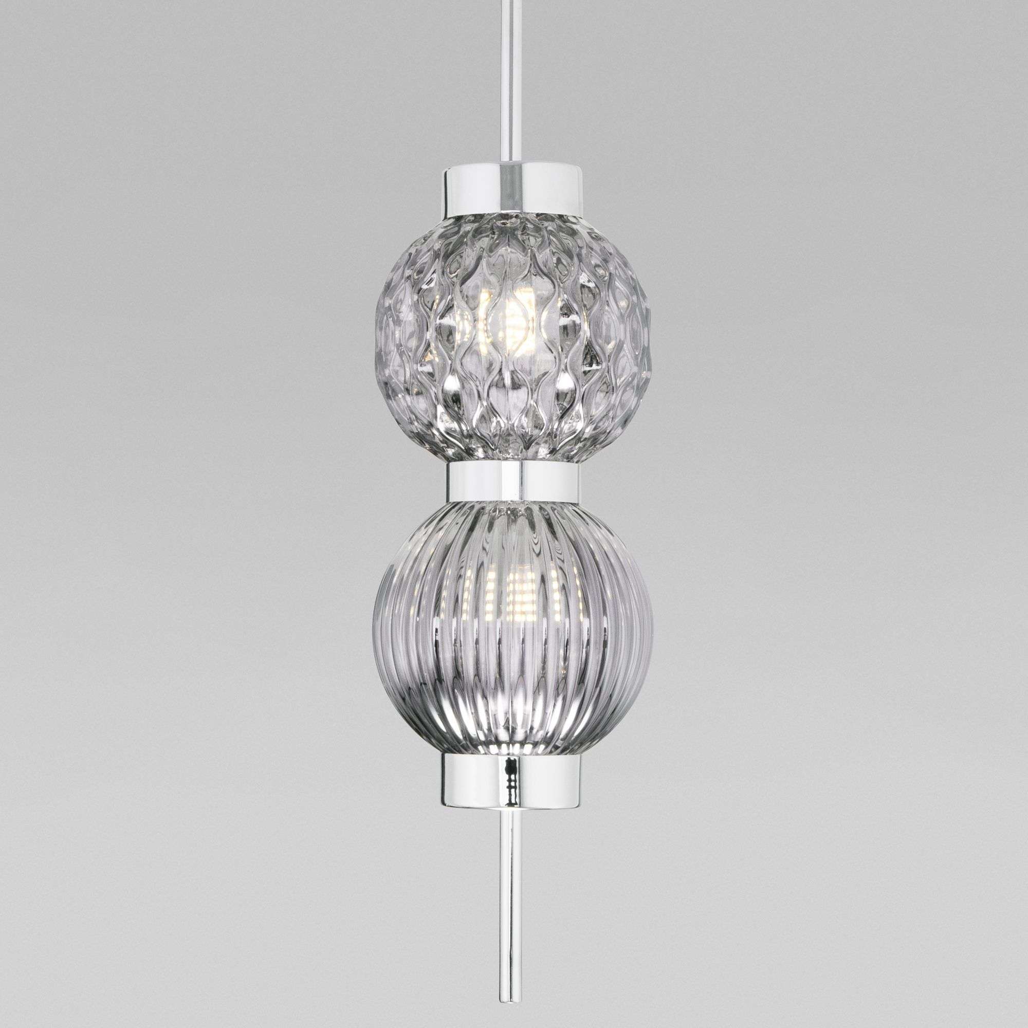 Подвесной светильник со стеклянными плафонами 50186/2 хром серия Plaz предназначен для создания дополнительного освещения и акцентной подсветки в современных интерьерах. Светильник со сменной лампой G9 создаст качественное освещение на площади 1 кв.м. и подсветит рабочие зоны на кухне, в гостиной, в офисе и других местах.