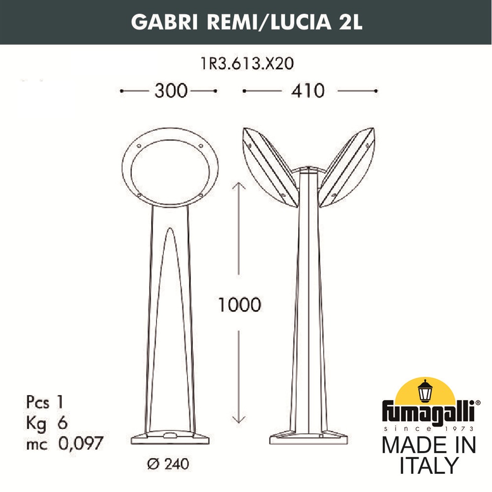 Садовый светильник-столбик наклонный Fumagalli Gabri remi/Lucia 2l 1R3. 613. X20. LYE27 в Калуге