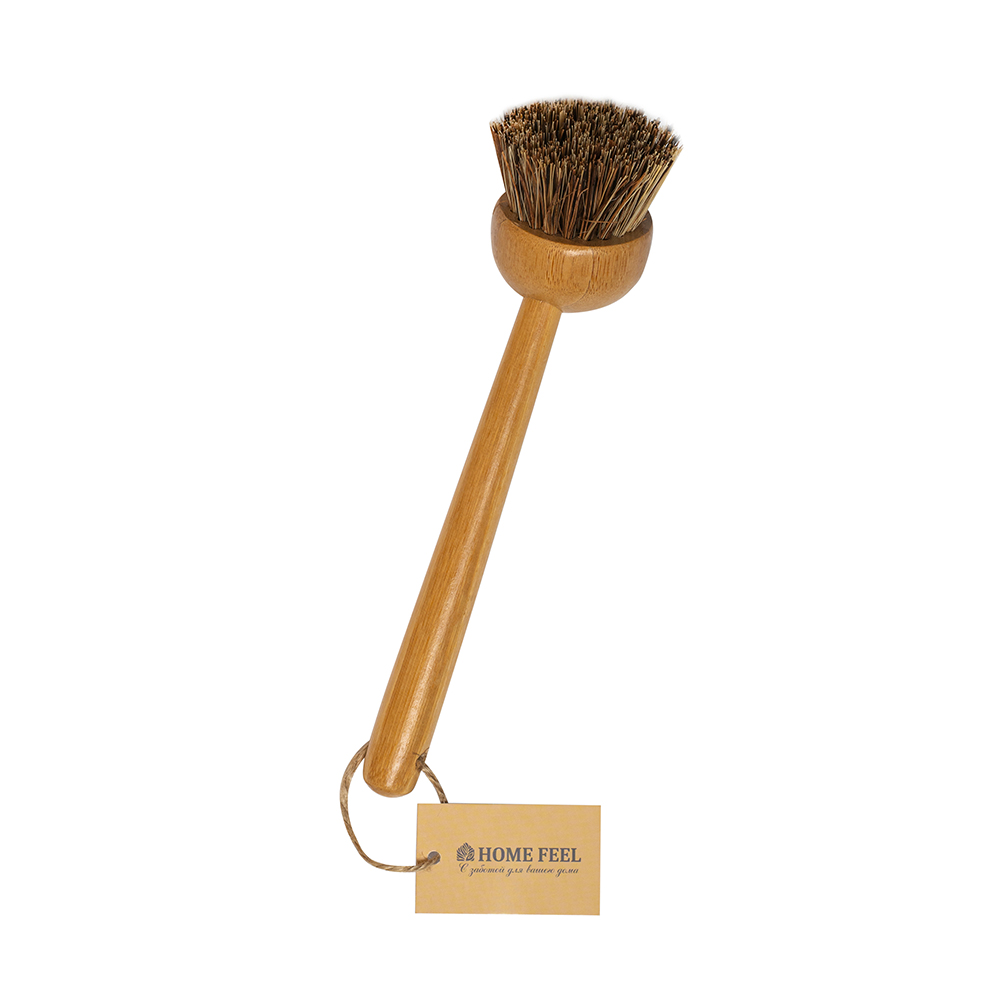 Щетка с длинной деревянной ручкой для мытья посуды с темной щетиной из сизаля HomeFeel в Калуге