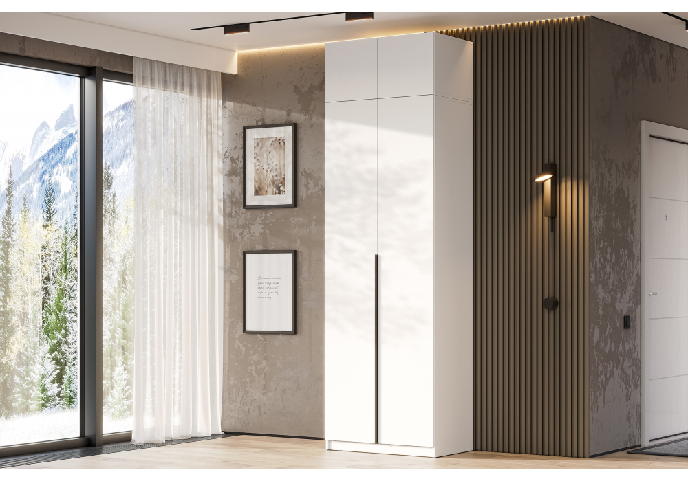 Купить "Шкаф комплектация 1 Woodville Даиго с антресолью белый текстурный 676147"