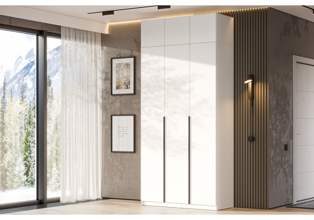Купить "Шкаф комплектация 2 Woodville Даиго с антресолью белый текстурный 676149"