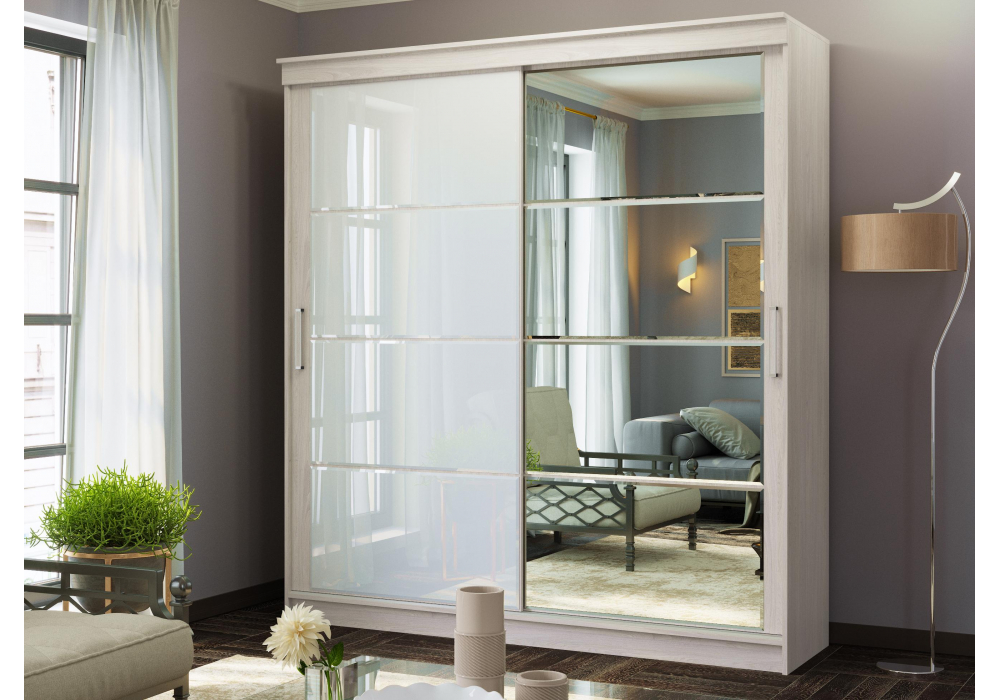 Шкаф-купе Woodville Москана-2 1, 5м анкор светлый / зеркало / лакобель белый 614766 в Калуге
