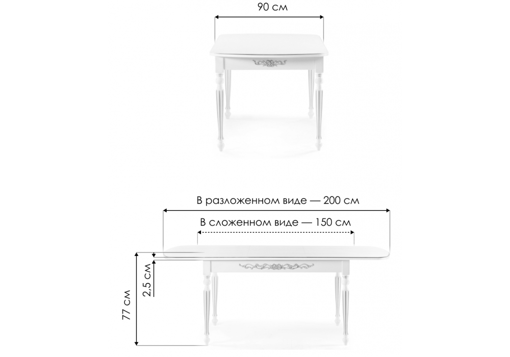 - Длина стола в разложенном виде: 2000