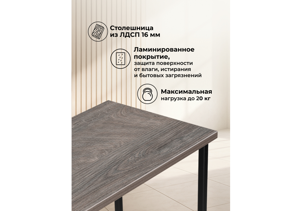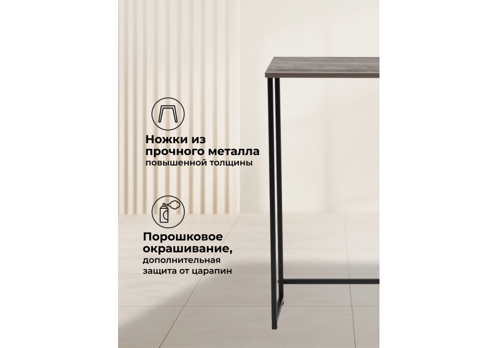 Консольный столик Феот сочетает в себе практичность и современный дизайн. Идеально подходит для прихожей, гостиной или коридора. Материал каркаса - металл; Цвет ножек - черный; Ширина - 80; Глубина - 30; Высота - 77; Длина - 80;