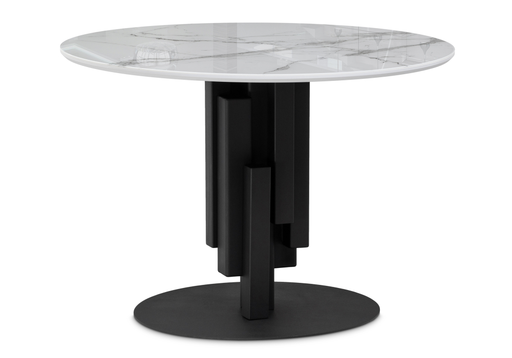 Толщина столешницы: 2,5 см. Материал каркаса - Металл; Материал ножек - Металл; Материал столешницы - Стекло; Цвет каркаса - Черный; Цвет ножек - Черный; Цвет столешницы - Белый мрамор; Ширина - 110; Высота - 75; Длина - 110;