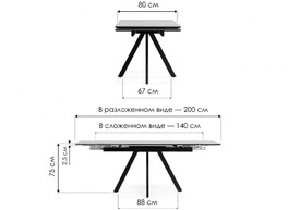 Керамический стол 140(200)х80 раскладной Woodville Старлайт snow alpin white / черный 622891