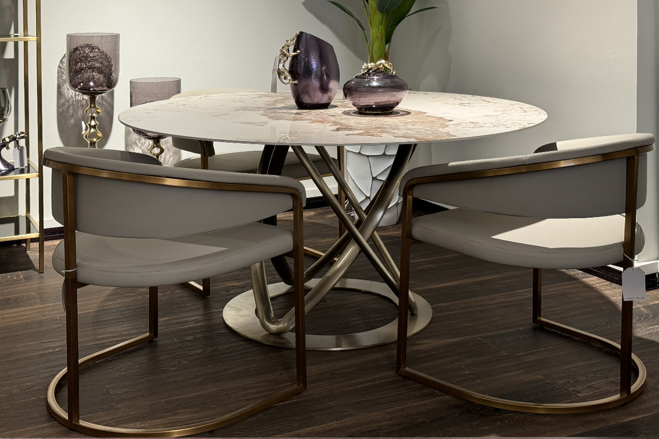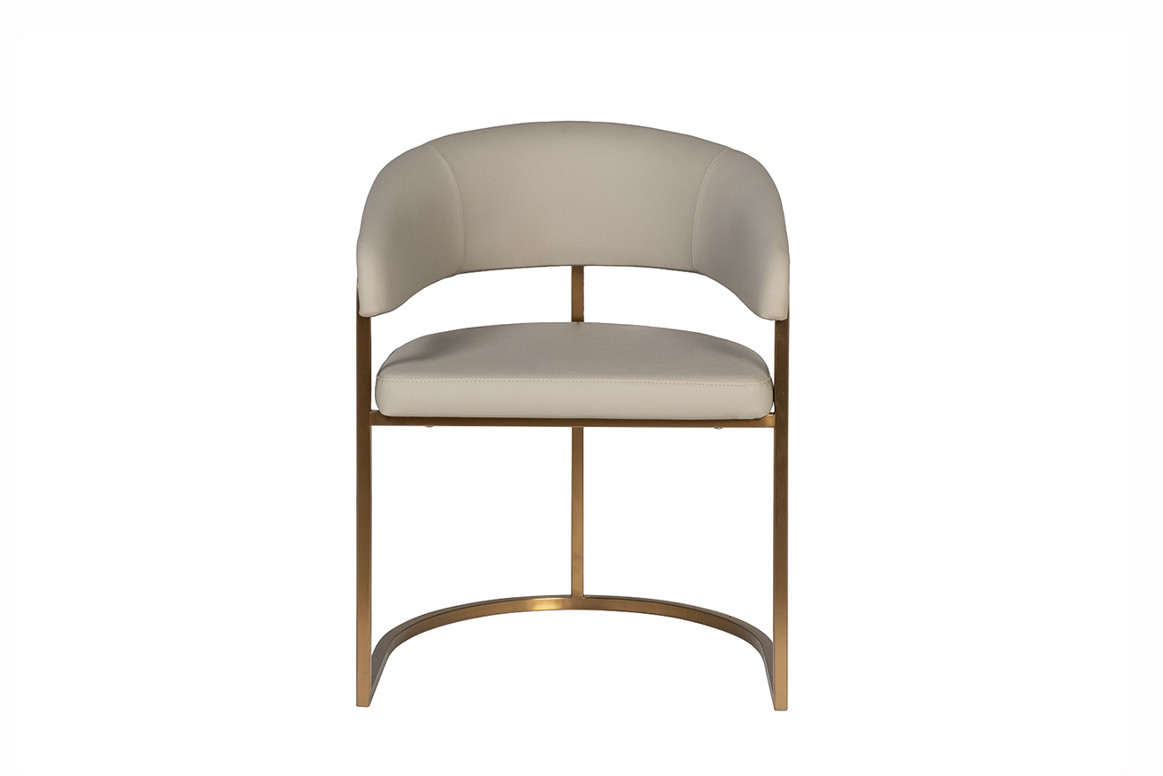 Современные интерьеры стремятся к балансу форм и назначения мебели. Этот обеденный стул из искусственной кожи идеально вписывается в концепцию эстетики минимализма. Лаконичные формы, сочетание искусственной кожи с металлическим основанием в матовом золотом оттенке делают его актуальным выбором для интерьеров в стиле современный минимализм, модерн и нео-арт-деко. Экокожа придает стулу элегантную тактильность, но при этом остается практичной в эксплуатации. Конструкция с округлой спинкой создает ощущение защищенности и уюта, а мягкое сиденье обеспечивает комфортную посадку. Этот стул станет гармоничным элементом обеденной зоны, подчёркивая внимание к деталям и трендовым материалам.