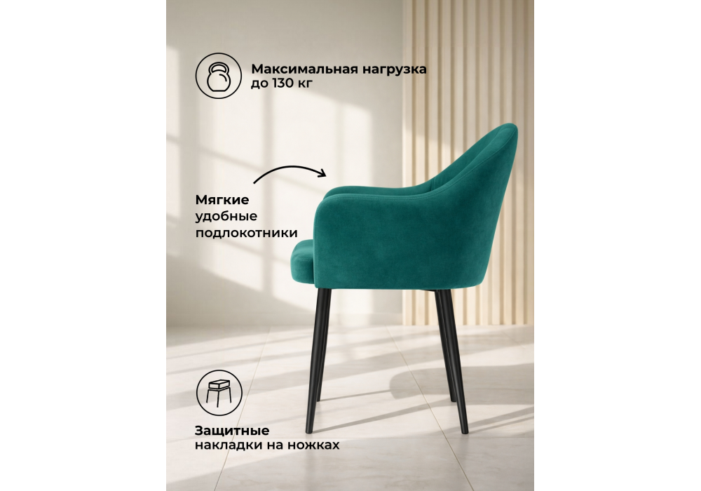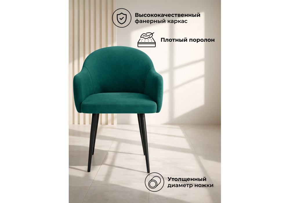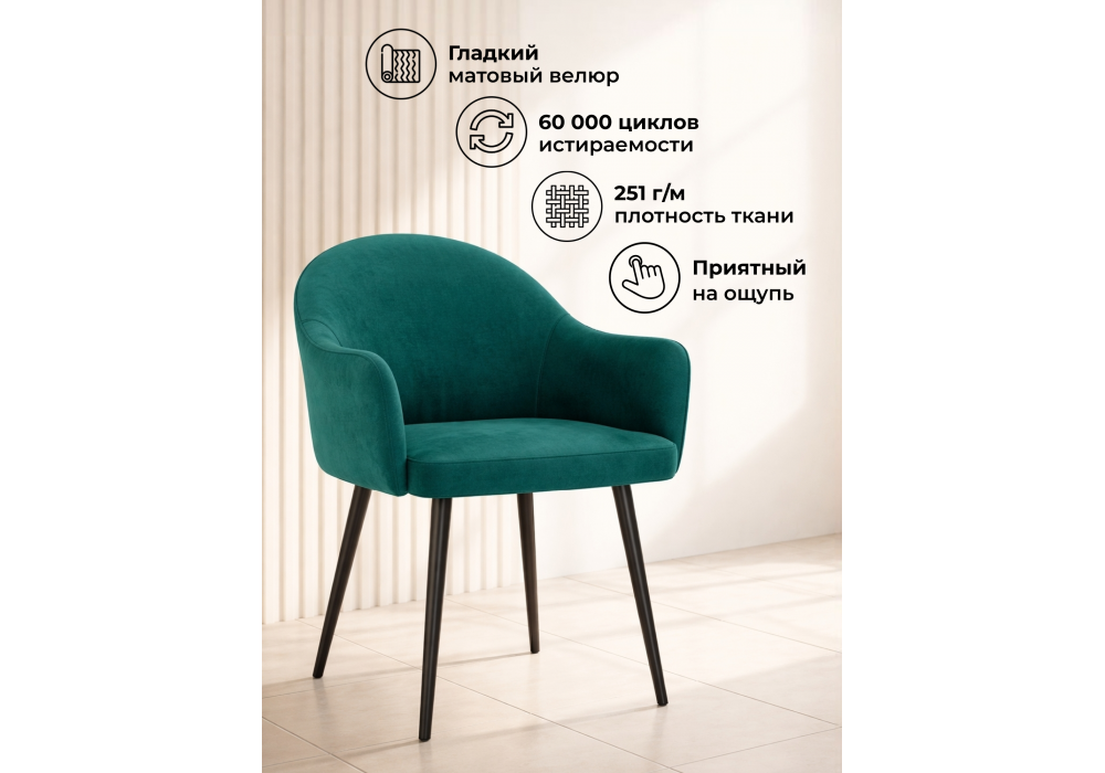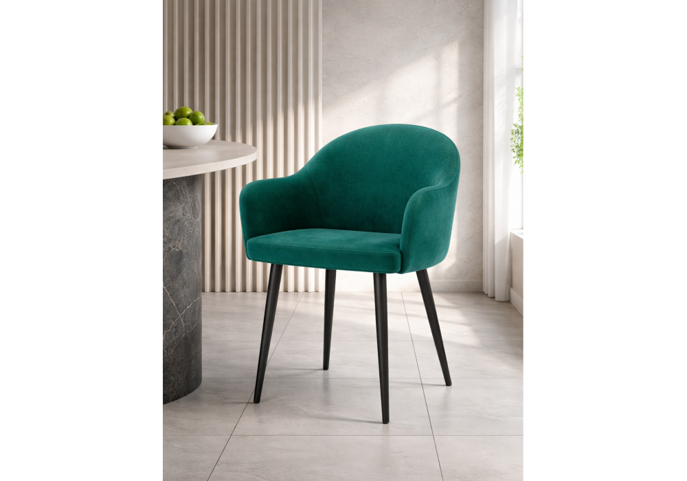 Стул Морено сочетает удобную высоту подлокотников с мягкой велюровой обивкой, создавая эргономичное и стильное место для отдыха. Его сбалансированный дизайн подходит как для работы за столом, так и для расслабления.
