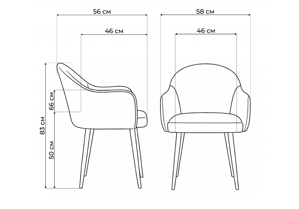 Материал каркаса - металл; Материал сиденья - велюр; Материал обивки - велюр; Ширина - 58; Глубина - 56; Высота - 83; Ширина сиденья - 46; Глубина сиденья - 46; Высота сиденья - 50;