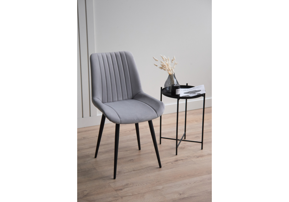 Материал каркаса - металл; Материал сиденья - велюр; Материал обивки - велюр; Цвет ножек - черный; Ширина - 50; Глубина - 56; Высота - 82; Ширина сиденья - 47; Глубина сиденья - 42; Высота сиденья - 48;