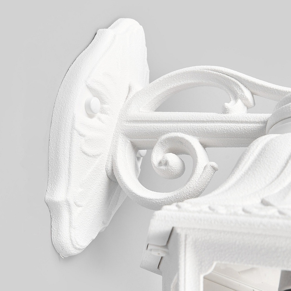 Светильники уличные настенные FUMAGALLI серии SABA, модель SABA/BISSO DN. Консольный уличный светильник для монтажа на стену. Настенный кронштейн BISSO малого размера, установленный "вниз" и светильник SABA. Используются для фасадного и архитектурного освещения в стиле "классика". Место установки уличных светильников - фасады, колонны и другие вертикальные поверхности исторических зданий, котеджей, загородных домов, церквей, а так же, другие места где требуется и возможна установка фонарей. Изготовлены в Италии, по уникальным технологиям "FUMAGALLI" из современного композитного полимера RESIN. Этот материал в 5 раз прочнее металла, не ржавеет, не окисляется, не выгорает на солнце, его не нужно красить. Все светильники пыле-влаго защищены по стандарту IP55 (защита от пыли, защита от струй воды, падающих под любым углом). Рассеиватель выполнен из антивандального, не мутнеющего и не горючего PMMA (ПолиМетилМетаАкрилат). Срок службы светильника - не менее 20 лет. Температура использования от -60 до +90. В серии SABA есть фонари в настенном (BISSO/SABA, PORPORA/SABA) подвесном (SICHEM/SABA) и наземном исполнении (IAFAET.R/SABA, ALOE.R/SABA, ARTU/SABA, GIGI/SABA, RICU/SABA, RICU/ISSO/SABA 1L, RICU/ISSO/SABA 2L, RICU/ISSO/SABA 3L) со столбами разной высоты, с разным количеством и конфигурацией голов. Консоли настенных фонарей и кронштейны светильников на столбах освещения могут устанавливаться вверх/вниз. Столбы выше 150 см имеют в основе мощную стальную трубу с двойной оцинковкой. При заказе требуется выбрать цвет корпуса, цвет плафона и тип патрона. Возможен светодиодный вариант с цоколем GX-53. По стилю и дизайну серия уличных светильников SABA похожа на светильники среднего размера серии SALEM и на светильники большого размера серии SILOE. По размеру SABA относится к малым светильникам как серия ANNA и GLOBE 250.
