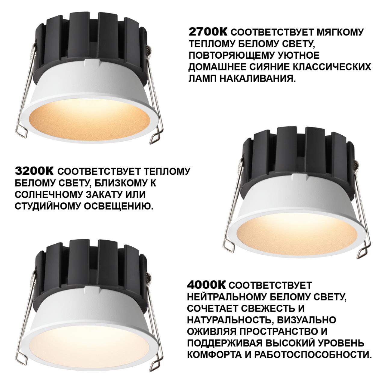 Купить "Светильник встраиваемый светодиодный с переключателем цветовой температуры и угла рассеивания Novotech SOLIS 359857 белый"