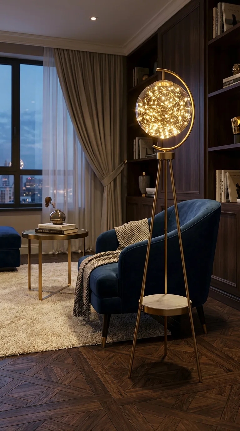 На треноге, С 1 плафоном, Светодиодные, Cо столиком?Способ крепления и установки люстры.