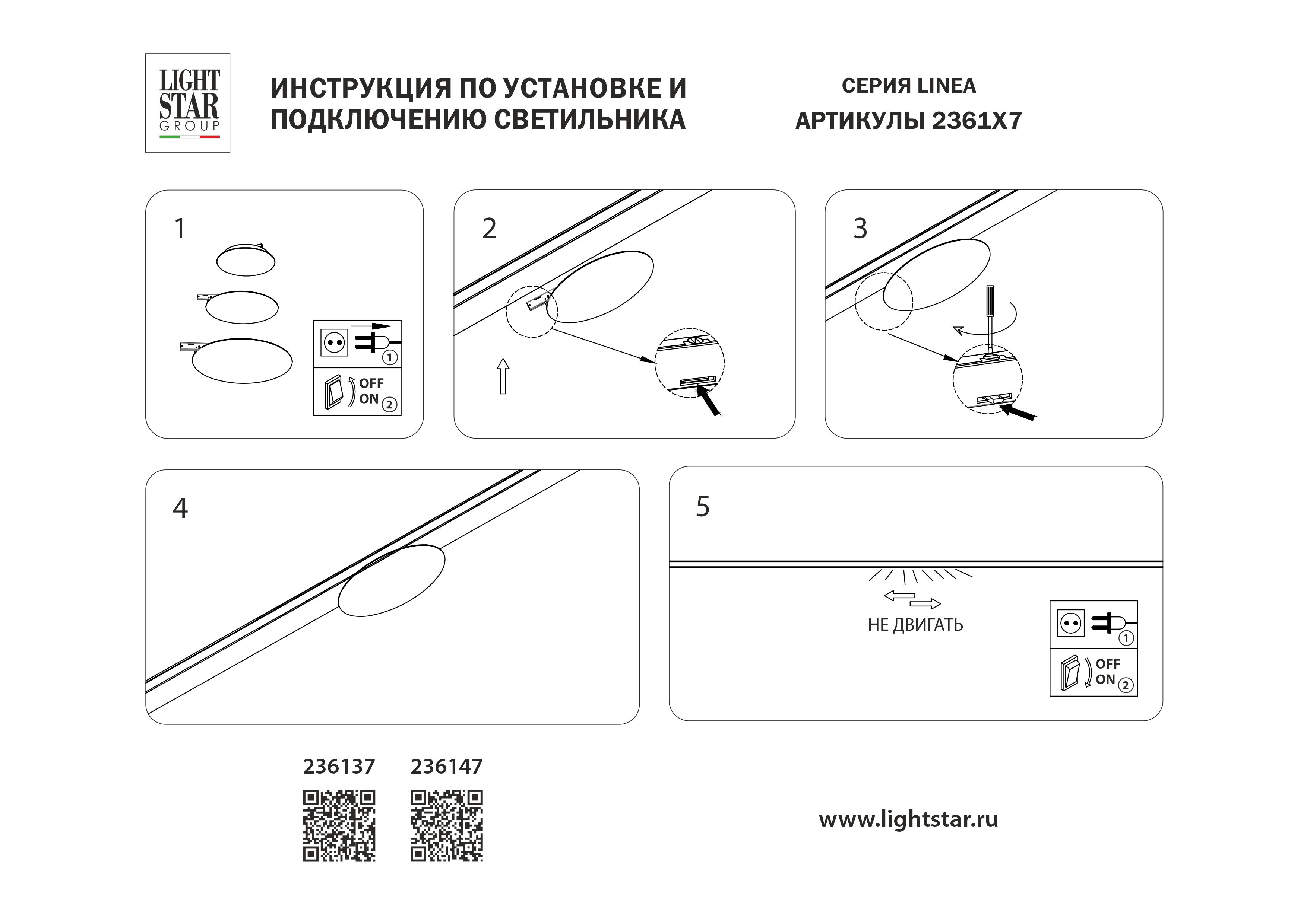Трековый однофазный светильник 24V 5W 200° 4000K Lightstar Linea 236147 в Калуге