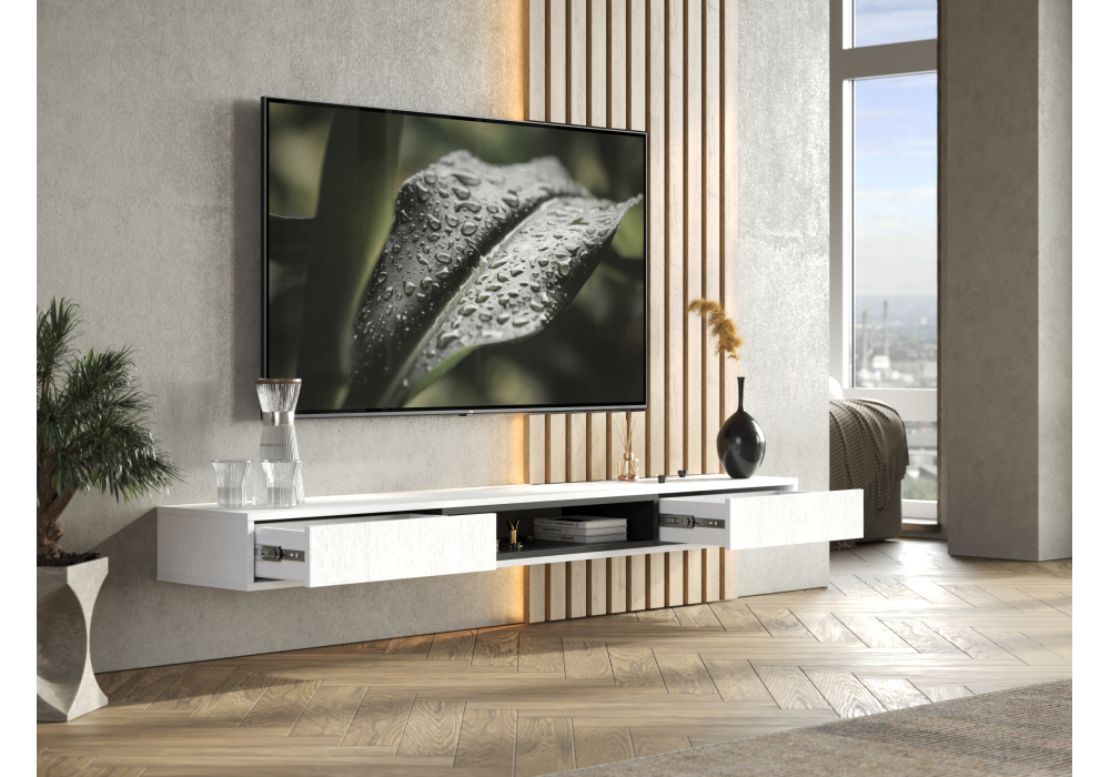 Купить "ТВ-тумба Woodville Делора 1,8м белый / черный 674720"