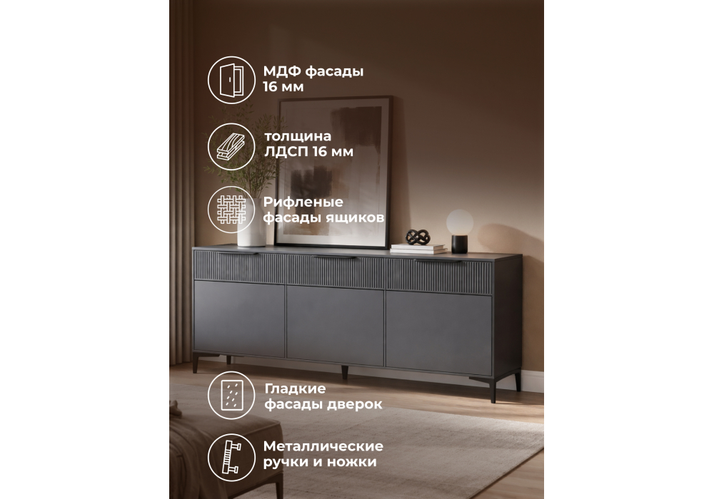 Купить "ТВ-тумба Woodville Иадама 3-ств. графит / графит софт 674704"