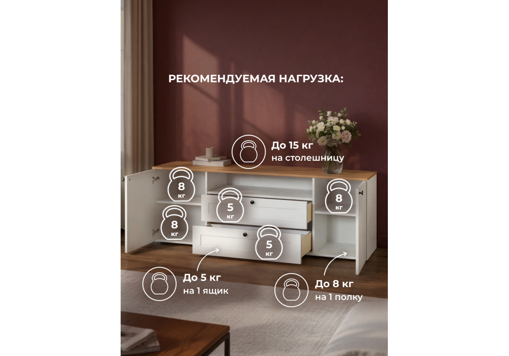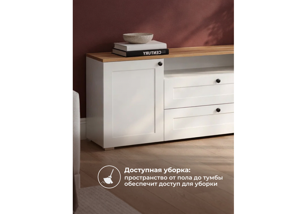 Купить "ТВ-тумба Woodville Опра белый шагрень / дуб золотой craft 676802"