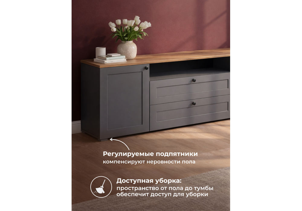 Купить "ТВ-тумба Woodville Опра серый графит / дуб золотой craft 676803"