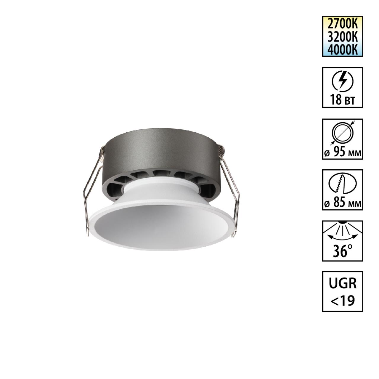 Встраиваемый светильник светодиодный с переключателем цветовой температуры Novotech NOVA 359854 белый в Калуге