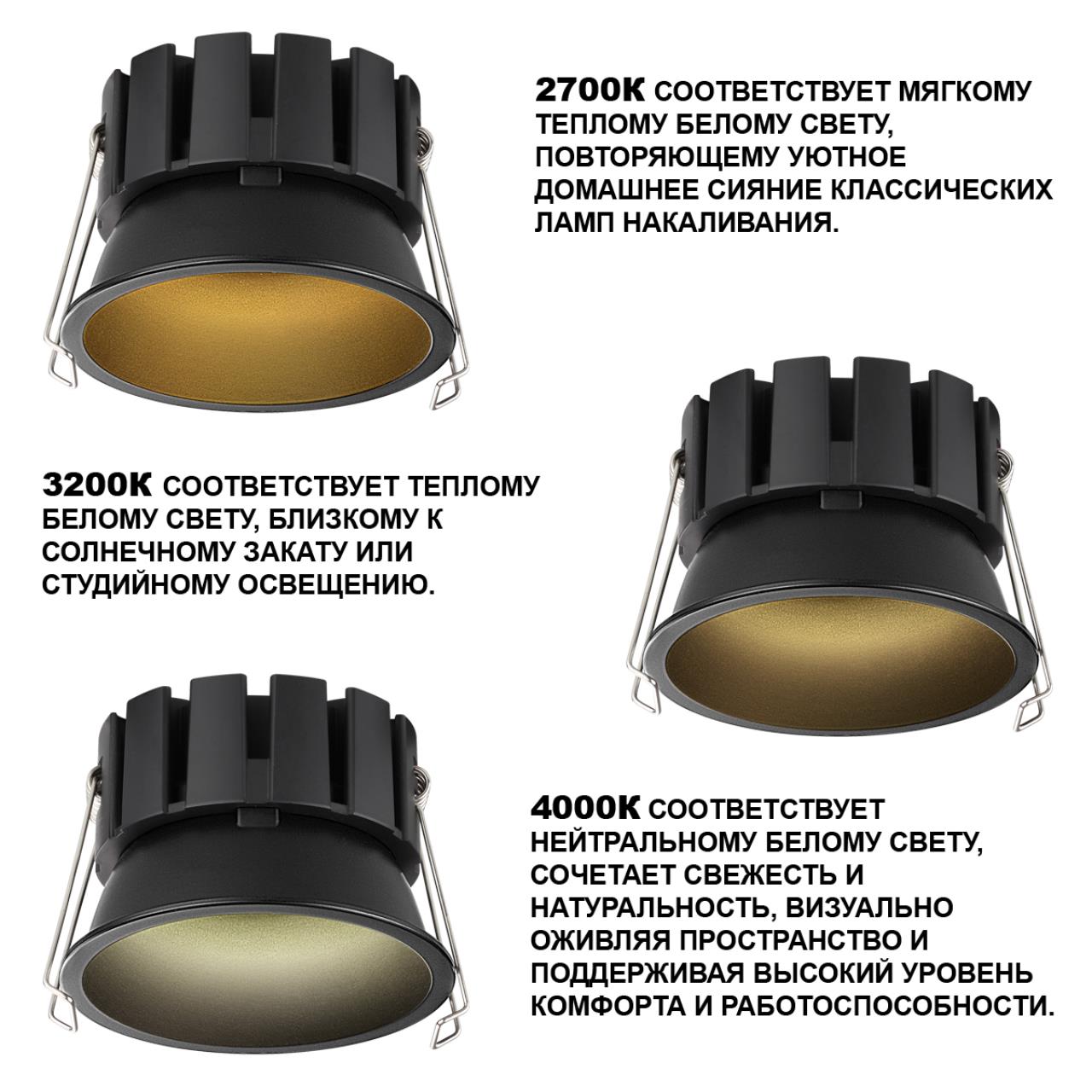 Купить "Встраиваемый светильник светодиодный с переключателем цветовой температуры Novotech SOLIS 359858 черный"