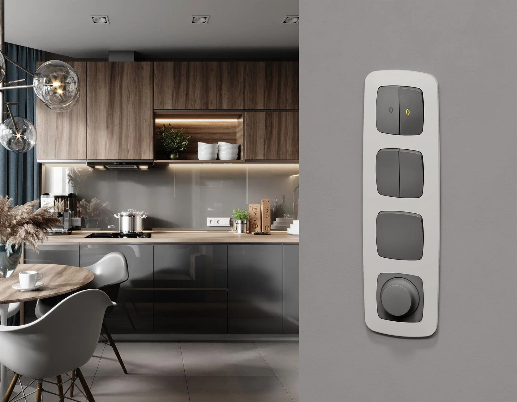 Многогранный ассортимент Ambrella Volt включает в себя механизмы, лицевые панели и рамки, а также комплекты, доступные в различных цветовых решениях. Продукция представлена в модульном исполнении, что позволяет гибко настраивать внешний вид и функциональность. Вам будет легко заменить лицевую панель, рамку или механизм, найдя идеальное сочетание цветов.